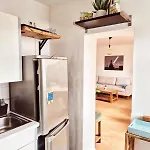 Dit appartement biedt een complete keuken ingericht met een oven en een vaatwasser voor zelfbediening.